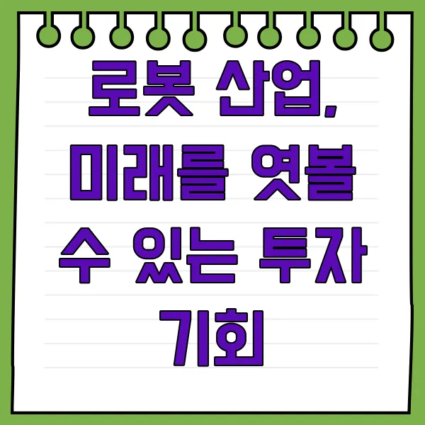 로봇 산업은 전 세계적으로 미래 성장 동력으로 주목받고 있으며, 기술 발전과 투자 확대에 힘입어 빠르게 성장하고 있습니다. 로봇 관련주는 주식 시장에서 매력적인 투자 대상으로 떠오르고 있으며, 옥석을 가려 투자한다면 훌륭한 수익을 얻을 수 있을 것입니다.