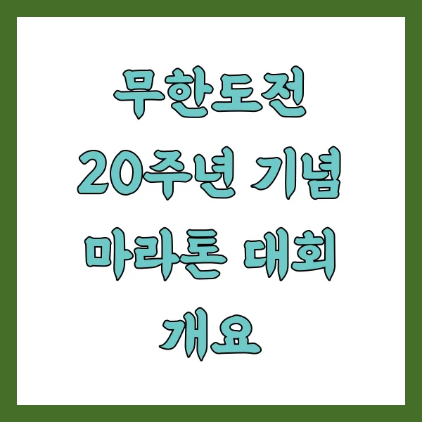 이번 무한도전 20주년 기념 마라톤은 단순한 달리기 대회가 아닌, 무한도전의 역사를 함께 되돌아보는 의미 있는 행사가 될 것입니다. 특히 코스 곳곳에 설치된 명장면 포토존과 다양한 이벤트는 참가자들에게 잊지 못할 추억을 선사할 것입니다.