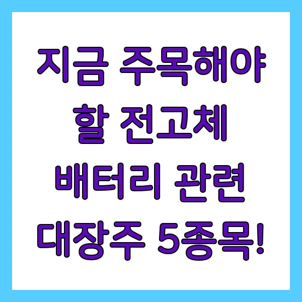 지금 주목해야 할 전고체 배터리 관련 대장주 5종목!